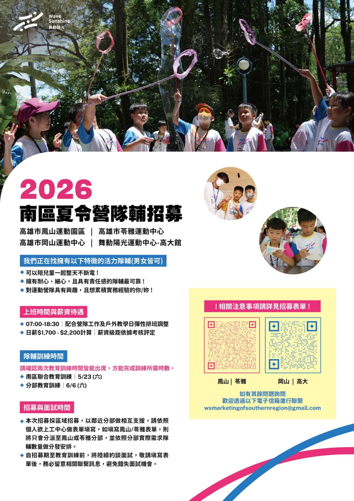【 招募公告 ‧ 2026 舞動陽光南區夏令營隊輔 🔥 】